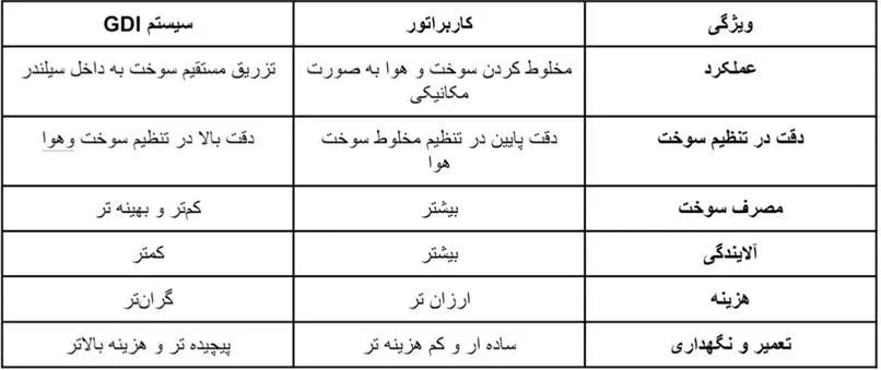 مقایسه کاربراتور و سیستم GDI
