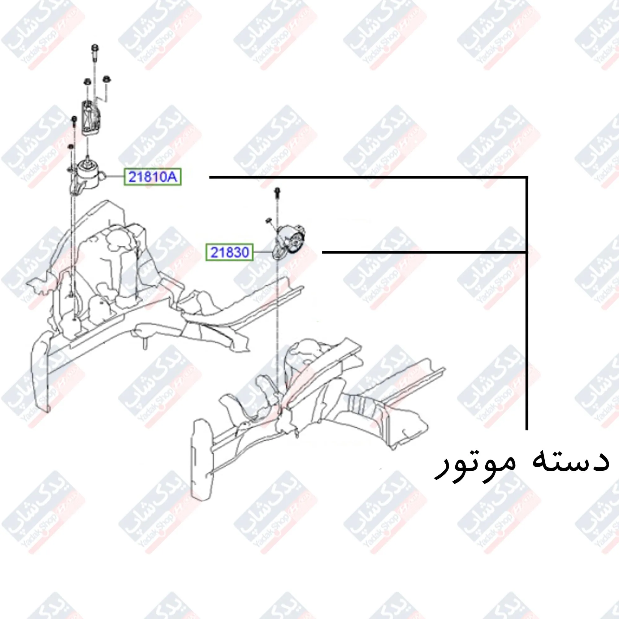 معمولاً در قسمت زیرین موتور و به بدنه خودرو متصل میشود. این قطعه به منظور نگهداری و تثبیت موتور در جای خود طراحی شده و به جلوگیری از لرزش و حرکات اضافی موتور کمک میکند. همچنین، دسته موتور به انتقال نیرو و ضربههای ناشی از کارکرد موتور به بدنه خودرو کمک میکند.