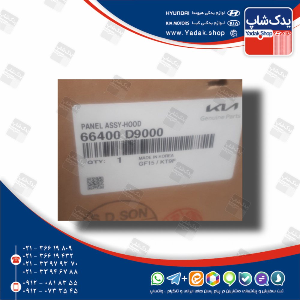شما می توانید محصول درب موتور (66400D9000) اسپورتیج نیو QL را به صورت آنلاین در تلگرام ، تلفنی و یا مراجعه حضوری خرید کنید.