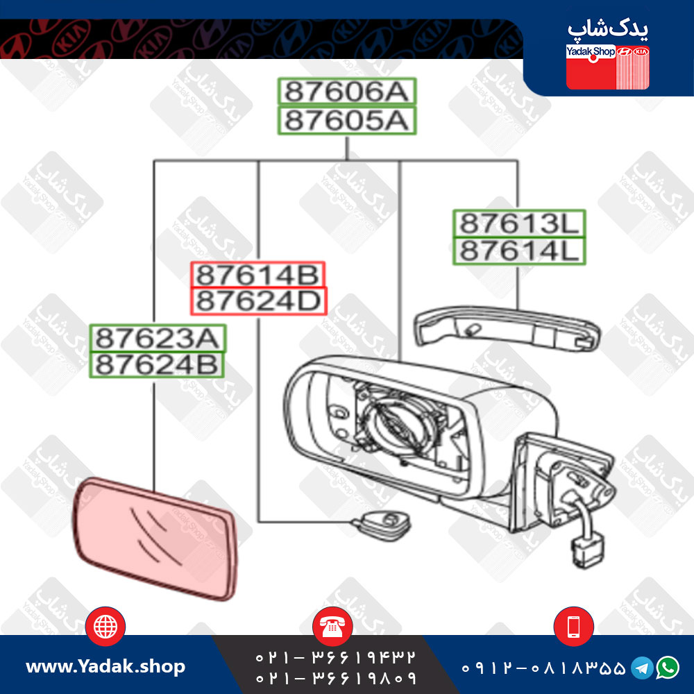 شیشه آینه چپ (راننده)